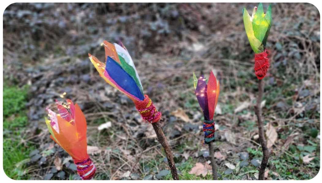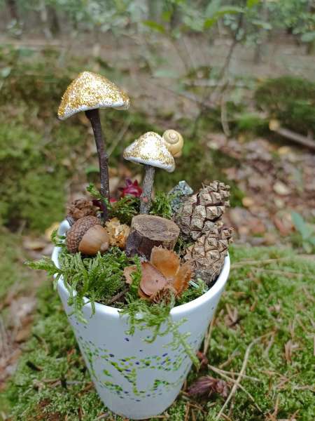 Am Ende der Feier gehen die kleinen Gäste mit selbst gestalteten Naturkunstwerken in den Händen nach Hause.
