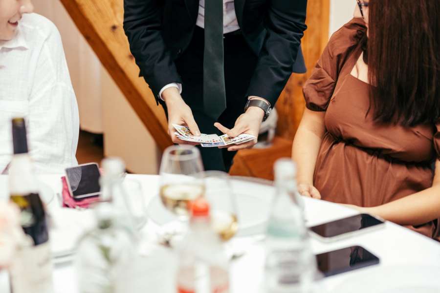• Faszinierende Tischzauberei: Roland zaubert direkt vor den Augen deiner Gäste und schafft magische Momente, die lange in Erinnerung bleiben.
